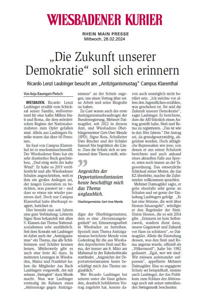 Ricardo Lenzi Laubinger besucht am "Antiziganismustag" Campus Klarenthal